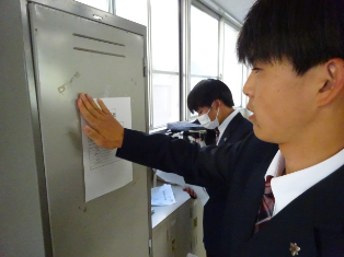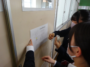 その後、生活防災委員は避難経路図を各ホームルーム教室に貼りました。
