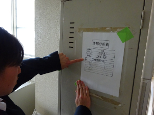 また、環境整備委員は清掃分担表を清掃用具入れに貼りました。
