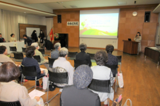 第1部の議事終了後、第2部の講演会ではフルーツ王国である山梨についての魅力やSDGsの取り組みを野菜ソムリエの加藤恵美子さんが話してくださいました。