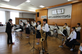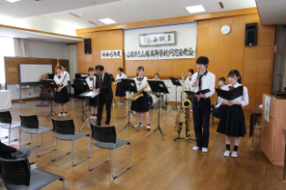 また、吹奏楽部はヤングマンなどの昭和歌謡と校歌を演奏しました。昔を思い出しながら口ずさみ、手拍子で会場が盛り上がりました。