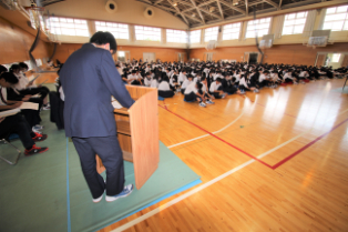 生徒総会終了後には、県高校総合体育大会の壮行会が行われました。