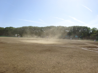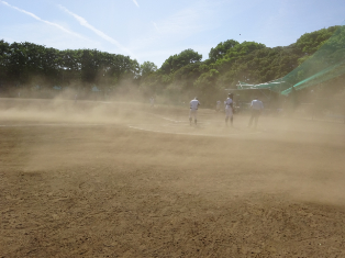 野球部も県外高校と練習試合を行いました。暑さに加え、強風によって巻き上げられた砂で大変でした。