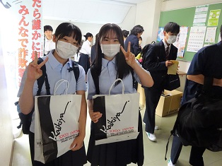 山梨県立山梨高等学校 > 学校から > 夏服販売 2024年5月24日カテゴリー: 学校から 夏服販売 昨日のポロシャツに続き、今日は夏用のスラックスとスカートが販売されました。 先日注文したものを、代金と引き換えに受け取っていました。 冬用とデザインは同じですが、生地は薄く、涼しいものになっています。