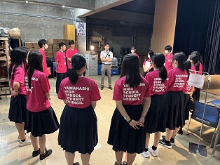 山梨県立山梨高等学校 > 学校行事 > 学園祭 > 梨窓祭リハーサル 2024年6月25日カテゴリー: 学園祭 学校行事 梨窓祭リハーサル 今日は明日からの梨窓祭の準備とリハーサルを行いました。 今年は会場が甲州市民文化ホールになったため、初めての事が多く苦労や不安がありましたが予定通り終了することができました。 特に生徒会役員の生徒たちは会場準備などもあり、休む暇がありませんでした。 明日からの2日間、みんなが楽しめるように協力してがんばりましょう。