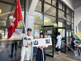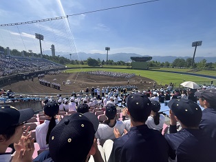朝から日差しが強く、厳しい暑さになりましたが開会式で梨高野球部が元気に行進する雄姿をマネージャーや保護者も見守りました。