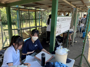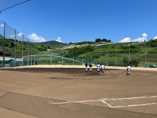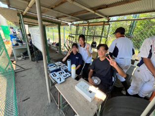 山梨県立山梨高等学校 > 生徒会活動 > 部活動 > 野球 > 野球部新チーム 2024年7月23日カテゴリー: 部活動 生徒会活動 野球 野球部新チーム 野球部は3年生が引退し、1,2年生の新チームがスタートしました。 連日の猛暑の中で練習試合を行っています。今日は久しぶりのホームゲームでした。 開始時刻を早めたため、一番暑くなる時間を避け、昼過ぎに終了することができました。 人数が減った分、一人当たりの仕事の量も増え、プレーしながら一人で何役もこなさなければならず大変です。 3年生も審判の手伝いをしてくれました。 グラウンドの周りは一面桃とブドウ畑に囲まれており、今は1年で一番賑わう収穫シーズンを迎えています。 梨高生には毎日の風景ですが、このグラウンドを訪れる他校のチームにとっては新鮮な風景だそうです。