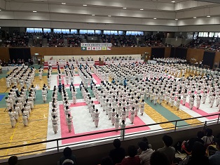 競技会場のSAGAプラザは道衣の選手で埋め尽くされ、迫力ある演武とともに気合の入った掛け声が響きわたりました。