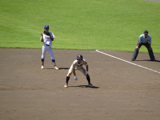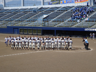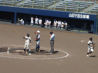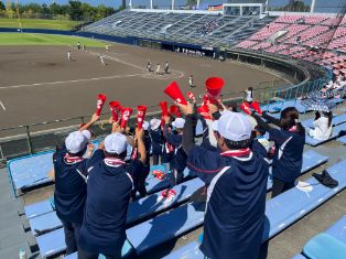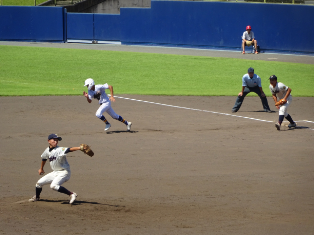 序盤からピッチャー大山の好投と野手の安定した守備で相手に得点を許さないまま得点チャンスを狙い、5回にはタイムリーヒットで2点先取しました。