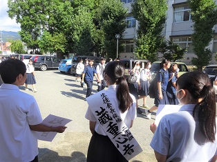 4日(水)の生徒会役員選挙の投票を前に選挙運動をしています。