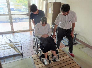 山梨県立山梨高等学校 > 学校から > 出前授業 2024年10月2日カテゴリー: 学校から 出前授業 1年生の総合的な探究の時間では職業について調べています。 今日は実際に様々な職業を知るために分野別に分かれ、学校や会社の方に出前授業をしていただきました。 介護職では車いすの扱い方、その他、医療や美容・理容、デザイン、建築、自動車整備、犬のトリミング、観光ビジネスなど実際の仕事について体験しながら説明を受けました。 どれも知識や技術をしっかり身に付ける必要があることが分かりました。
