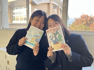 山梨県立山梨高等学校 > 学校から > 修学旅行のしおり完成 2024年11月6日カテゴリー: 学校から 修学旅行のしおり完成 2年生は修学旅行の準備が大詰めです。 しおりが完成しました。表紙のデザインは駒井さんと遠藤さんです。 鮮やかな色使いで、どちらにも九州の名所や名物が描かれています。 見ると旅行のワクワク感が高まってきます。 今日は全員でしおりを見ながら注意事項を確認しました。 楽しい旅行にするために体調も整えておきましょう。