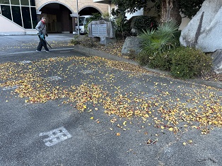 業務員さんが毎朝落ち葉を集めてくれています。濡れていなければ集めやすいと言っていました。