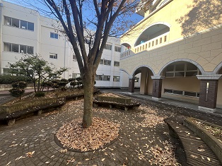 校舎正面のナンキンハゼは紅葉が一気に進み、青空と朝日に輝いてとてもきれいです。