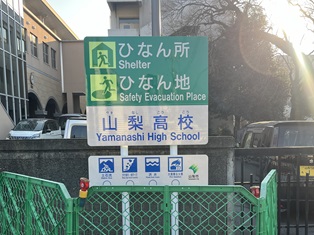 先日避難所であることを示すサイン看板が学校前に新たに設置されました。