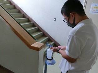 来校者・職員玄関や生徒昇降口購買前など校内4か所に設置しました。