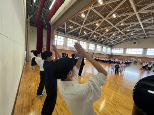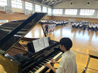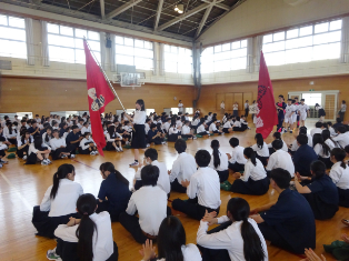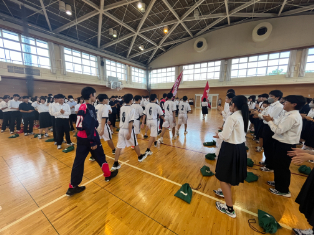 2年ぶりの出場となり、全校生徒の校歌と応援で健闘を祈りました。