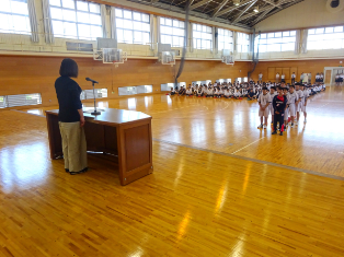 関東大会へ出場する男子ハンドボール部の壮行会を行いました。
