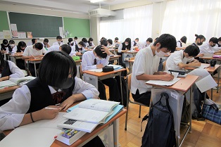 試験前は7校時の時間に各HR教室で自主学習会を行っています。