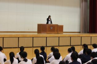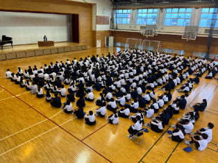 後期の始業式が行われ、校長先生からは3年生は進路も決まってくる生徒も出てくる時期になりますが「学ぶ事を止めない」、「落ち着いた学校生活を継続する」などについて話がありました。