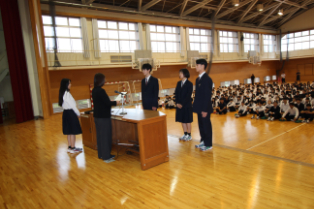 その後には9月に行われた生徒会役員選挙で信任された新生徒会役員に認証状が授与されました。