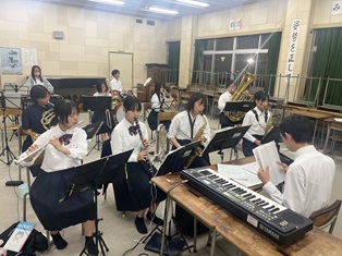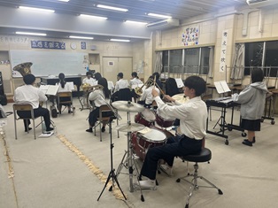 お祭りを盛り上げるように本番に向けて練習しています。みなさん聞きに来てください。