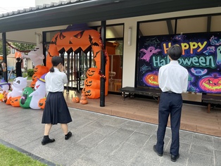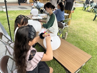 また、会場の広場では本校の生徒がボランティアでハロウィンのランタン作りを子どもたちに教えていました。
