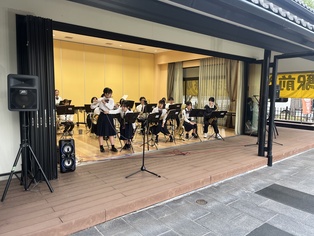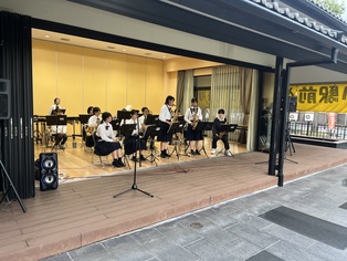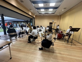 10月12日(日)に「街の駅やまなし」で開催された「やまなしし朝市」の秋祭りに吹奏楽部が出演しました。