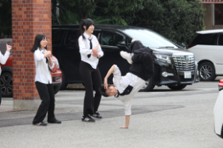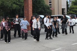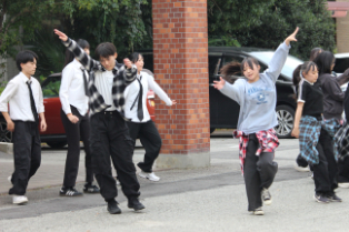 山梨県立山梨高等学校 > 生徒会活動 > 部活動 > ダンス同好会 > ハロウィンダンスパフォーマンス 2025年10月29日カテゴリー: ダンス同好会 部活動 生徒会活動 ハロウィンダンスパフォーマンス 中旬から季節が急激に進んだように感じた10月も終わりが近づき、31日はハロウィンです。 ダンス同好会が29日(水)の昼休みにハロウィンダンスパフォーマンスを行いました。 近くで見る生徒も教室の窓から見る生徒も手拍子で応援していました。 約10分と短時間でしたが、アクティブで表現力豊かな動きに引き込まれ、楽しむことができました。