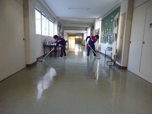 雑巾がけをして汚れを落とした後、ムラが出ないようにワックスの量を調整しながら丁寧に塗っていきました。