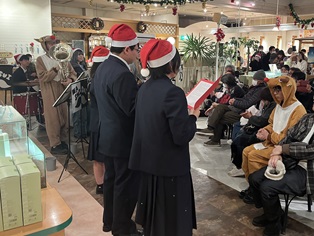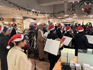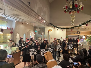 卒業生3名を含め、15人でクリスマス曲など4曲を演奏しました。