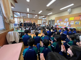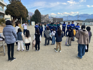 冬休み中の1月5日(月)に山梨高校近くの後屋敷学童クラブに通う小学生たちと交流し、生徒会役員と吹奏楽部また、希望した生徒たちが参加しました。