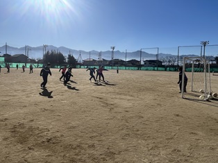 今朝は真冬の厳しい寒さになりましたが、グラウンドでは1校時に2年生男子体育の授業でサッカーが行われていました。