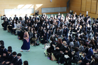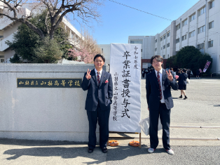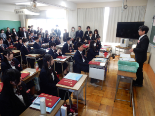 式後の最後のホームルームでは担任から一人一人に卒業証書が渡されました。生徒からは梨高で出会った仲間、や保護者、先生方へ感謝の言葉も語られ、別れの涙を誘いました。