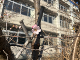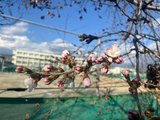 校舎前とグラウンドのソメイヨシノが咲き始めました。