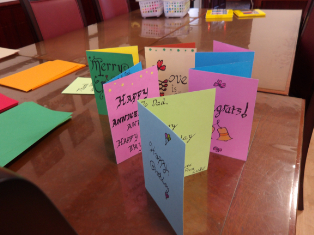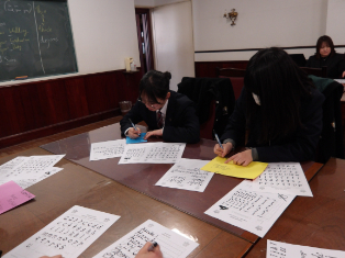 西洋書道の「Calligraphy」ではアルファベットを線の太さや角度を意識しながら、ゆっくり・丁寧に書く練習をして最後にグリーティングカードを作りました。