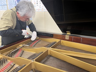 今日は先日調律をしたときに発覚したピアノの弦の修理をしてもらいました。