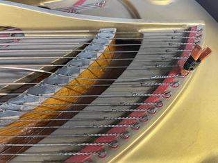 今から69年も前に製造されたものなので、金属の弦が劣化して切れかかっていました。