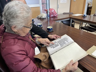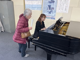 当時の写真を見たり、ピアノを見学しました。今でもサンフランシスコの合唱団に所属し、活動しているそうです。奈良先生が女学校の校歌を演奏すると歌詞を思い出しながら歌う姿に驚かされました。本人も懐かしさから、涙ぐんでいました。