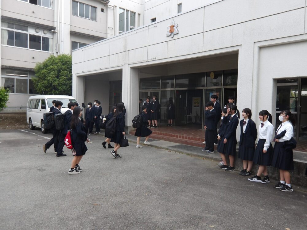 生徒昇降口では部活動や生徒会の生徒たちが登校してくる生徒に元気なあいさつを呼びかけていました。