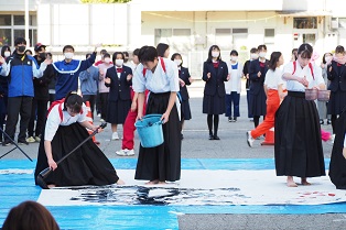 11月14日(土)に書道部がダンスグループと合同で書道パフォーマンスを行い、その様子を動画に撮影しました。