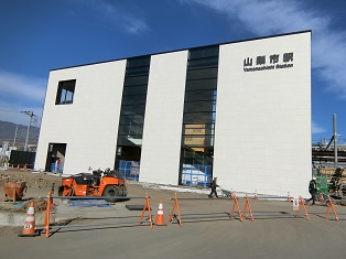 山梨県立山梨高等学校 > 学校から > 山梨市駅南口開通 2021年2月12日カテゴリー: 学校から 山梨市駅南口開通 JR山梨市駅の南北自由通路の南口が今日開通しました。 電車通学の生徒にとっては駅から踏切を通らないで学校まで来られるので、より早くなりました。 駅前広場付近はまだ工事中で、送迎などの車は入ることができません。