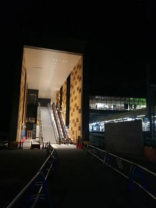 駅前広場付近はまだ工事中で、送迎などの車は入ることができません。