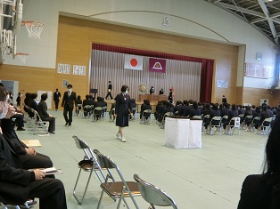 山梨県立山梨高等学校 > 学校から > 卒業式予行 2021年2月26日カテゴリー: 学校から 卒業式予行 26日(金)に同窓会入会式、記念品贈呈式、授賞式および、卒業式の予行が行われました。 授賞式では、皆勤賞、外部団体賞、生徒会功労賞の代表者に賞状が授与されました。 おめでとうございます。 卒業式の予行では、入退場や礼法の最後の確認が行われました。 いよいよ3月1日に別れが近づき、卒業生にも先生達にも感慨深い表情が見られました。