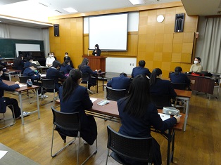 山梨県立山梨高等学校 > 学校から > 卒業生の話を聞く会 2021年3月5日カテゴリー: 学校から 卒業生の話を聞く会 県内の大学に通っている卒業生4人が高校時代の勉強方法や現在の大学生活について2年生に話をしてくれました。 「進路について迷っていた時は勉強にもやる気がなかったが、はっきりした目標を持つことができたところから自分は変わった」、「勉強で分からないところが出てきたらそのままにしないで、すぐに聞いたり調べたりする」、「大学では自分で調べてやらなければならないことが多く、できないと自分の責任になるので情報を収集する力が必要になる」など体験に基づいたアドバイスがありました。 もうすぐ受験生となる2年生たちはメモを取りながら真剣に聞いていました。