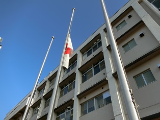 学校でも震災で犠牲となられた方々に哀悼の意を表するため、半旗を掲揚し、地震発生時刻の午後2時46分に1分間の黙とうを捧げました。