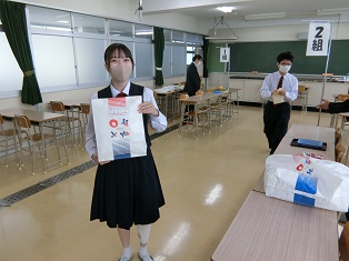 受け取ってすぐに着替えた生徒がいました。