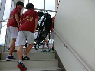 山梨県立山梨高等学校 > 生徒会活動 > アリーナ準備 2021年6月14日カテゴリー: 生徒会活動 アリーナ準備 13日(日)にアリーナの準備を行いました。1学年分のイスを間隔が広くなるように並べました。 また、発表を行うステージも広くとるため、補助ステージを設置しました。 さらに大型送風機を10台使用します。 バスケットボール部、ハンドボール部、生徒会役員が作業しました。
