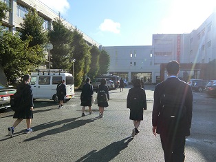 山梨県立山梨高等学校 > 学校から > 紅葉開始 2021年10月26日カテゴリー: 学校から 紅葉開始 校舎前のイチョウが下の方から色づき始めました。 11月中旬にかけて、ナンキンハゼとともに紅葉していきます。 青空と日差しが加わると、より一層きれいに映えます。