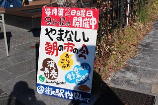 山梨県立山梨高等学校 > 学校から > やまなしし朝の市 2021年11月15日カテゴリー: 学校から やまなしし朝の市 11月14日(日)に山梨市の「街の駅やまなし」で開催された「やまなしし朝の市」で生徒が日下部署の署員と少年補導員の方々と合同で「特殊詐欺防止啓発キャンペーン」を行いました。 生徒がデザインした、のぼり旗とポスターを持ち、来場した方にチラシとともにマスクやウエットティッシュを配付しながら、電話などによる詐欺にだまされないように呼びかけました。 また、ダンスグループが若さ溢れる元気なダンスを披露して会場を盛り上げました。