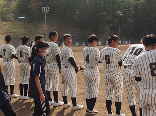 山梨県立山梨高等学校 > 生徒会活動 > 部活動 > 野球 > 野球1年生大会パート予選 2021年10月15日カテゴリー: 部活動 生徒会活動 野球 ◆大会結果◆ 野球1年生大会パート予選 10月13日(日)に1年生大会のパート予選が富士学苑高校のグラウンドで行われました。対戦校は春、夏の県大会で上位まで勝ち進んだ強豪校の駿台甲府高校でした。 1年生だけで行う慣れない試合で、捕球や判断ミスによる失点が続きましたが、ヒットをつなげて得点できた場面もありました。 結果は15対4の5回コールドゲームで初戦敗退となりました。 今後も練習に励み、がんばっていきます。応援ありがとうございました。